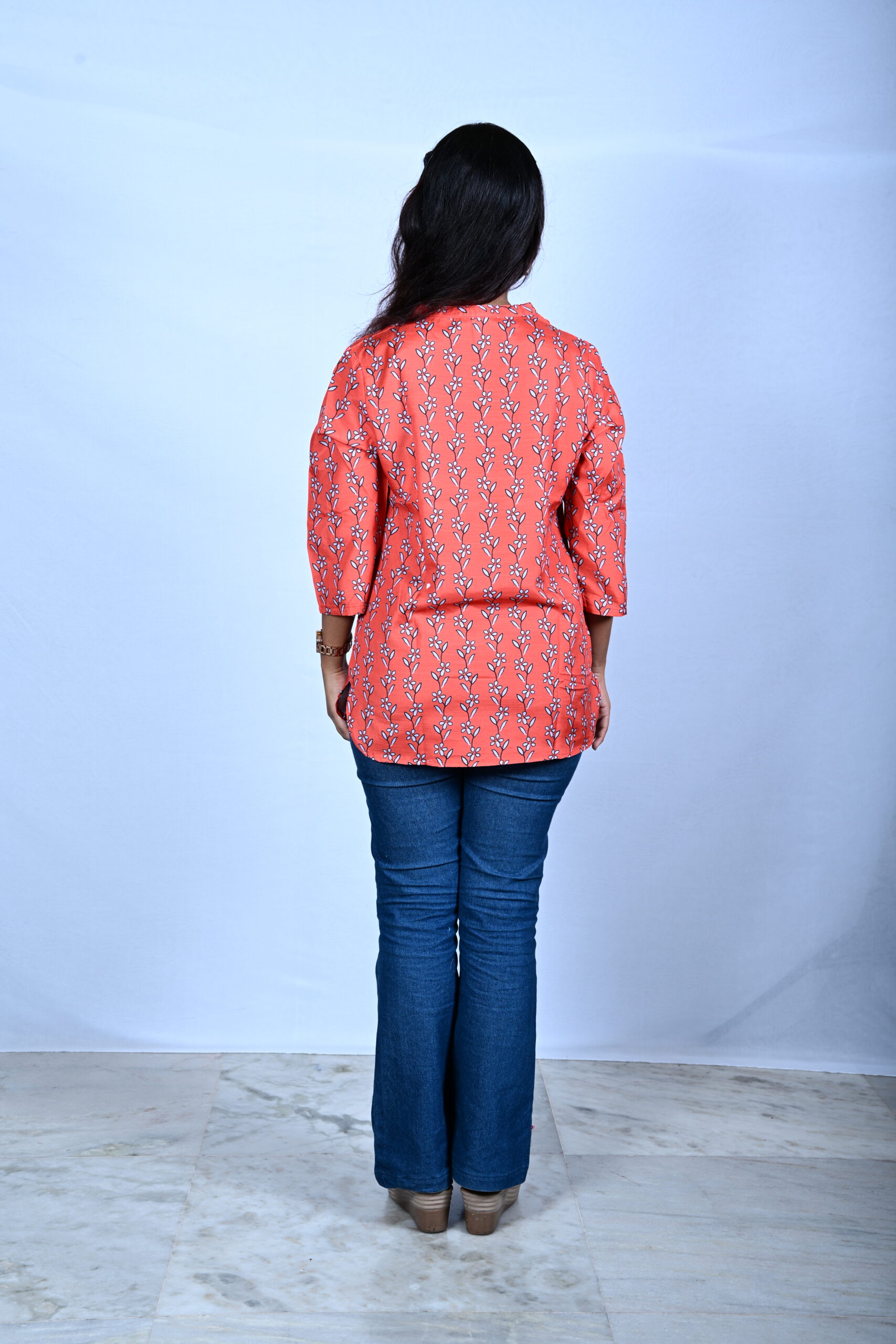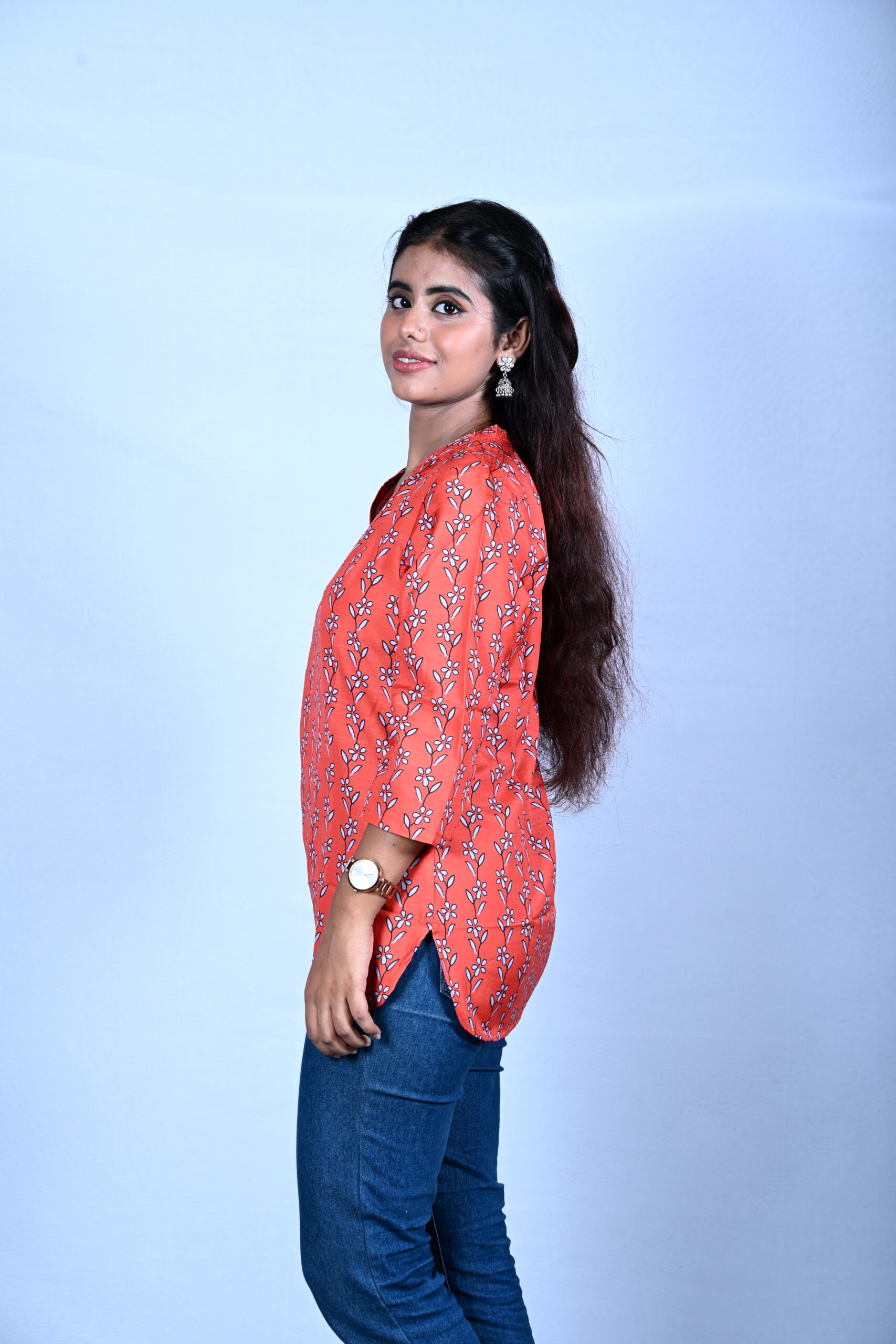 Be the first to review “WOMEN’S TRENDY ORANGE/RUST FLORAL PRINTED RAYON SHORT KURTI” Cancel reply